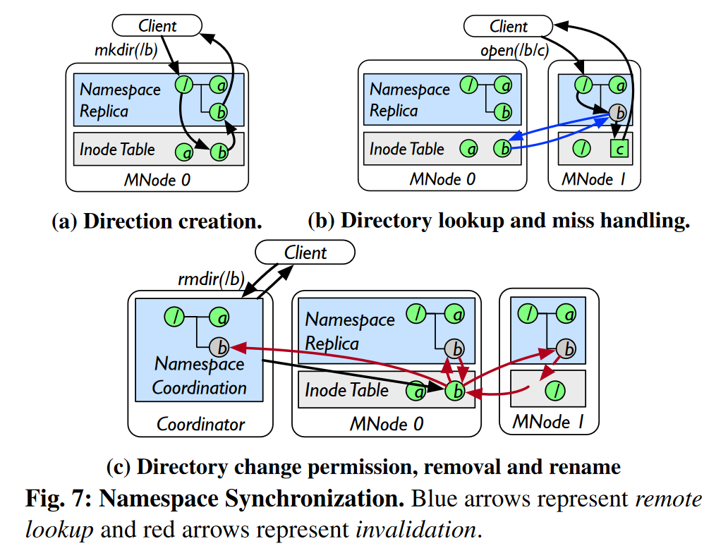 方法:在所有元数据服务器上复制整个命名空间,并采用延迟同步和无效机制来降低维护开销。